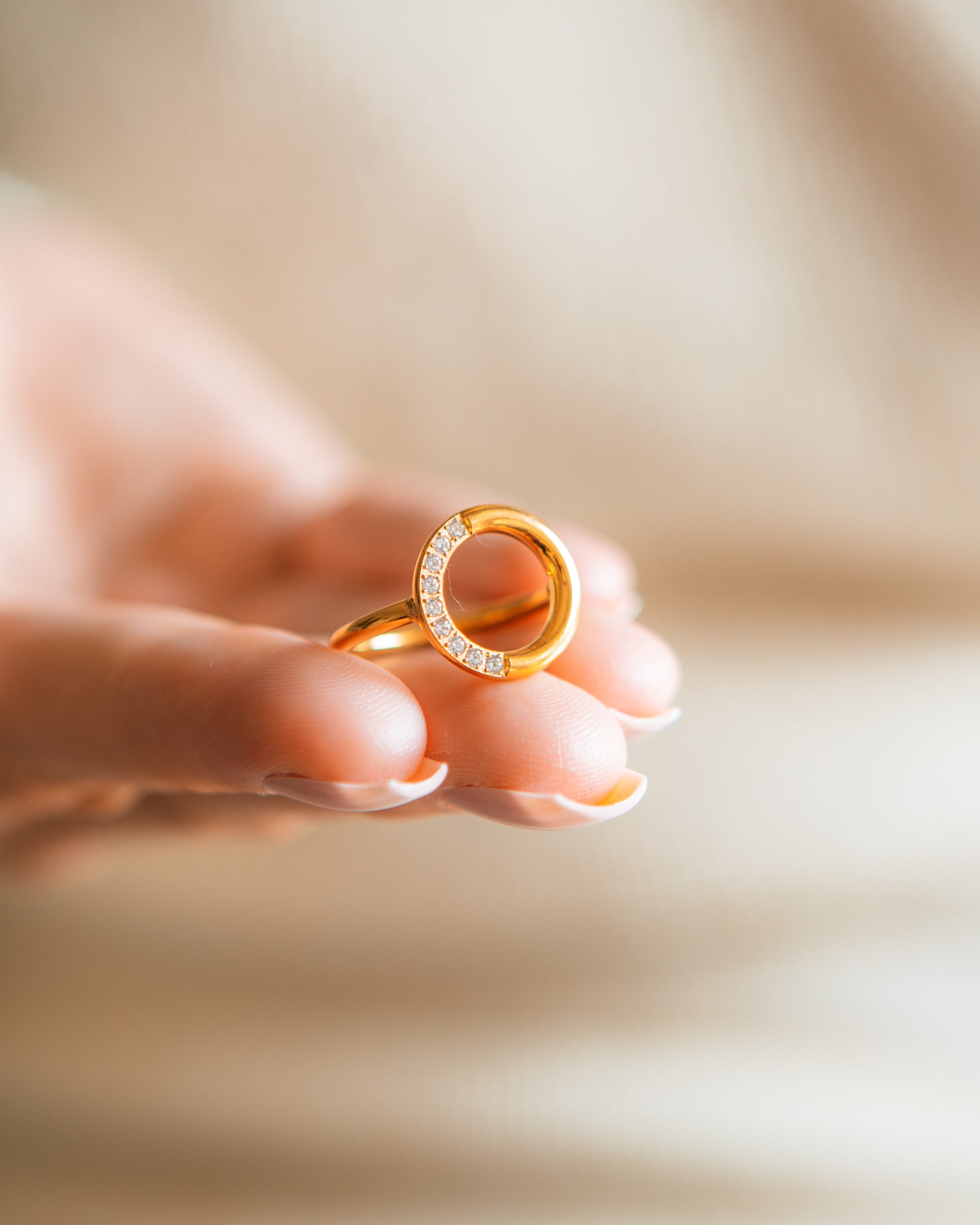 What goes around comes around. This beautiful gold gemstone ring is a spiritialist's dream and is perfect for stacking.