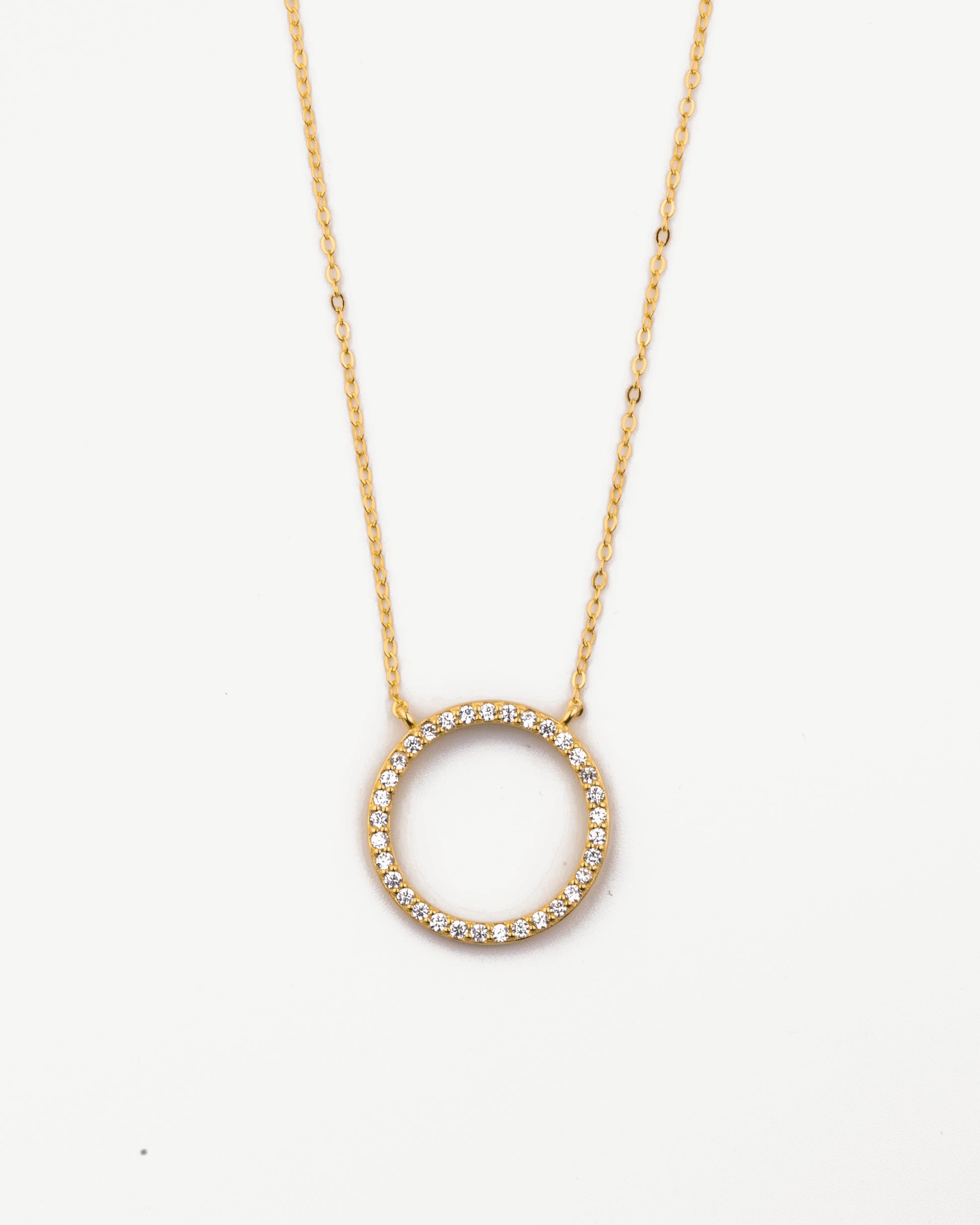 This large gemstone circle design gives this necklace an unique look you won't find often. Perfect for stacking or as a stand-alone piece.