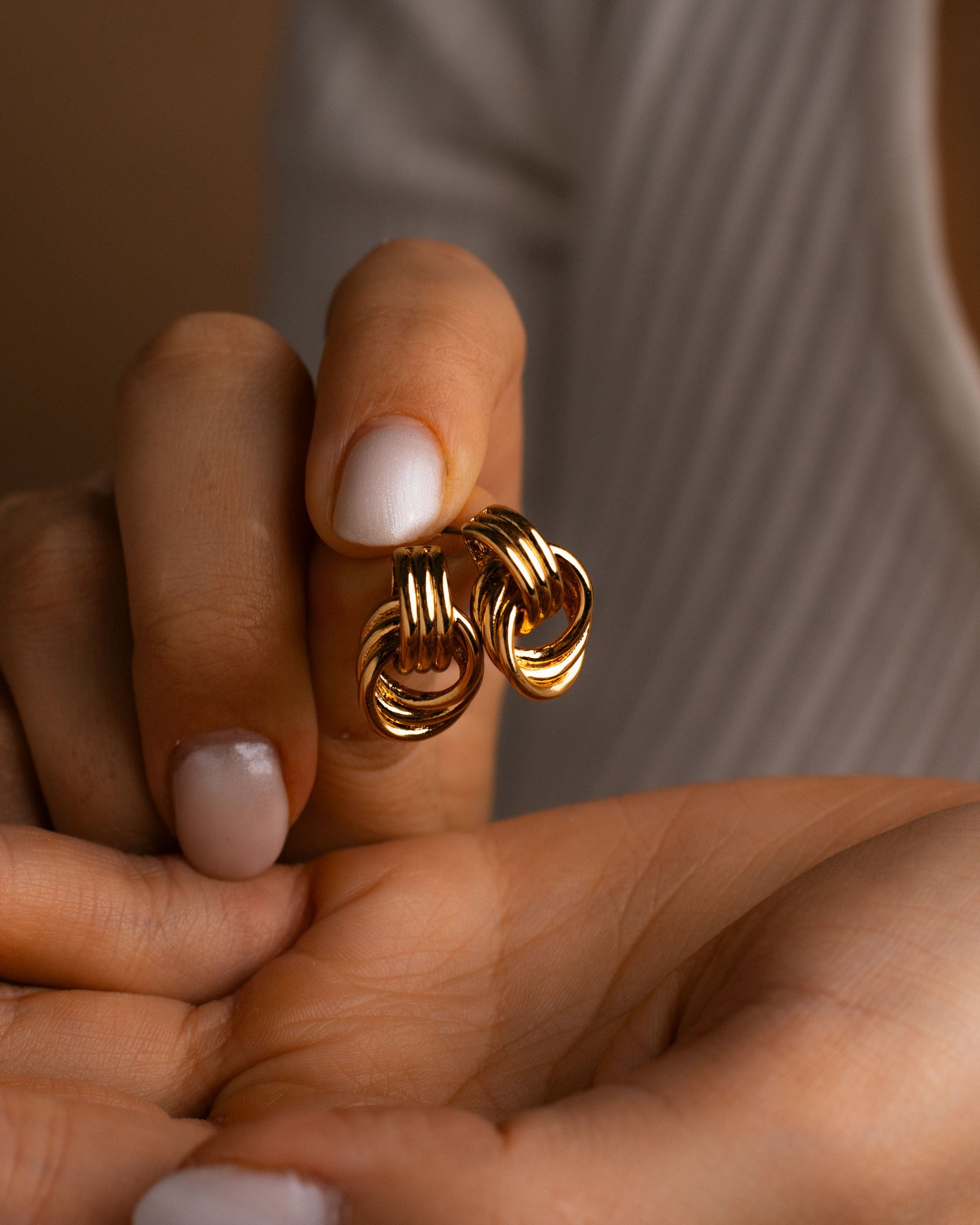 These complex and characteristic earrings are pieces to be shown off. The geometrical interconnected rings add depth and shape.