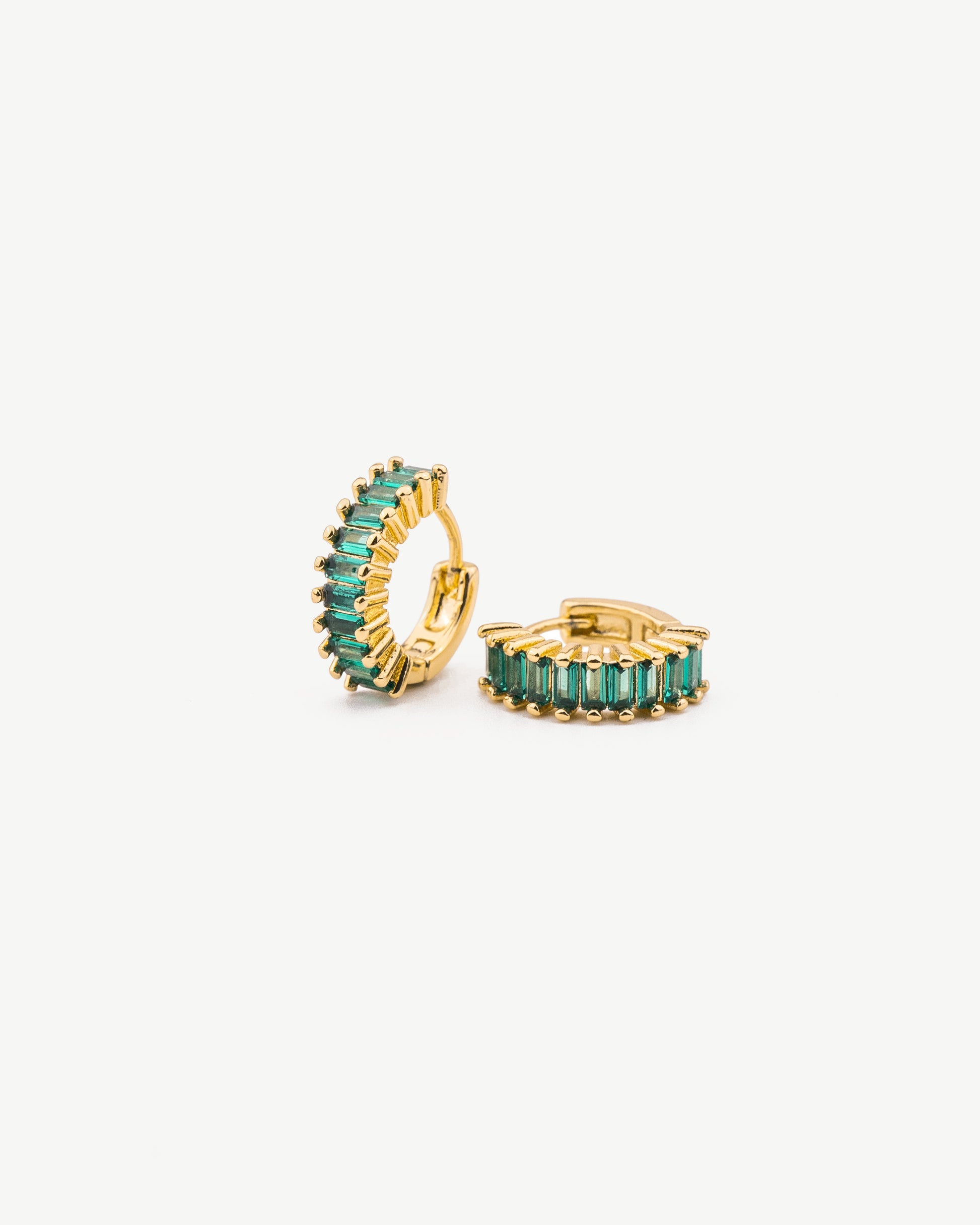 Shine like a star. These beautiful green gemstone baguette earrings are the definition of elegance. Perfect for stacking or as a solo wear.