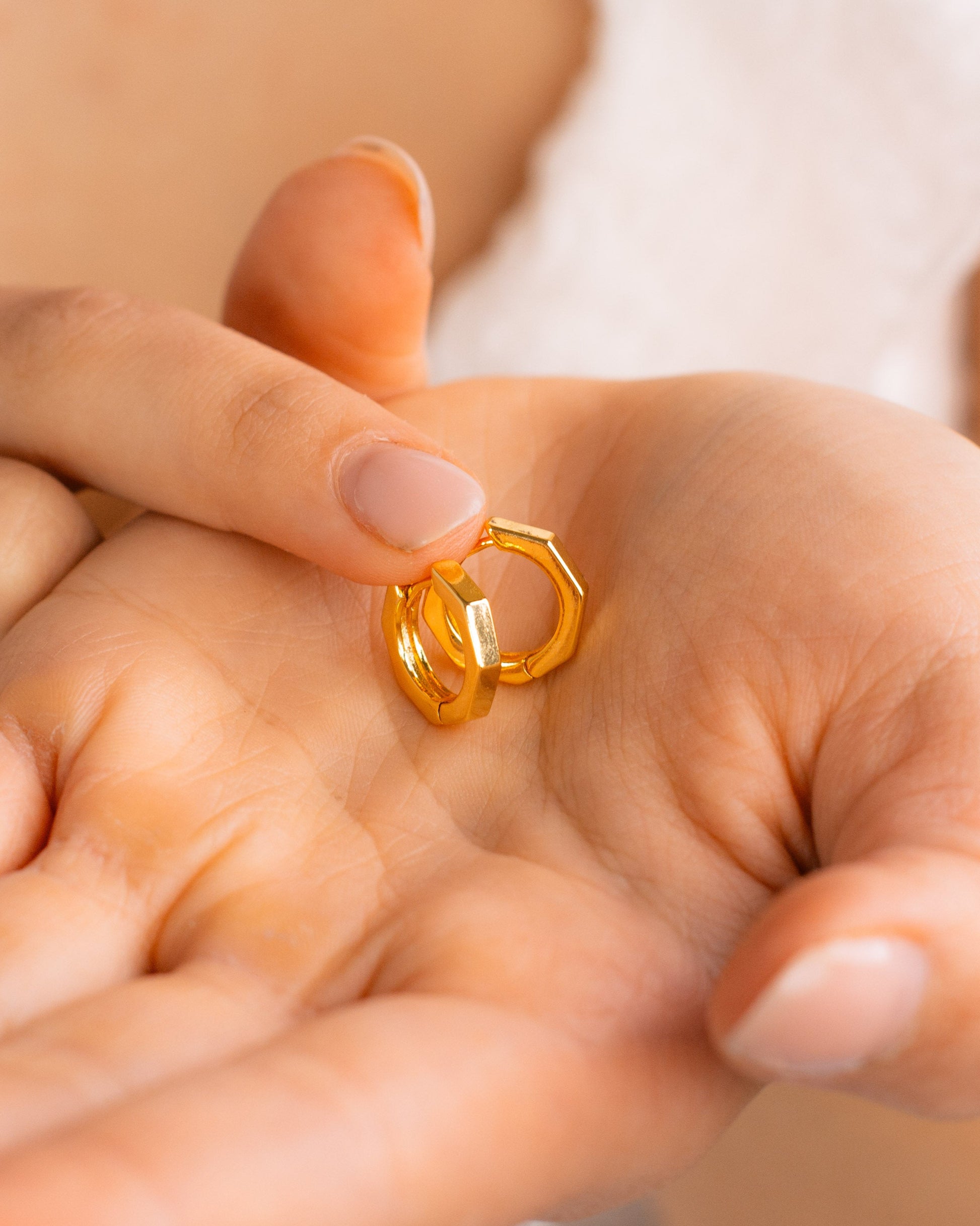 A modern take on earrings. These wonderful geometric earrings are architecturally inspired and will add a touch of elegance, and are perfect for stacking.