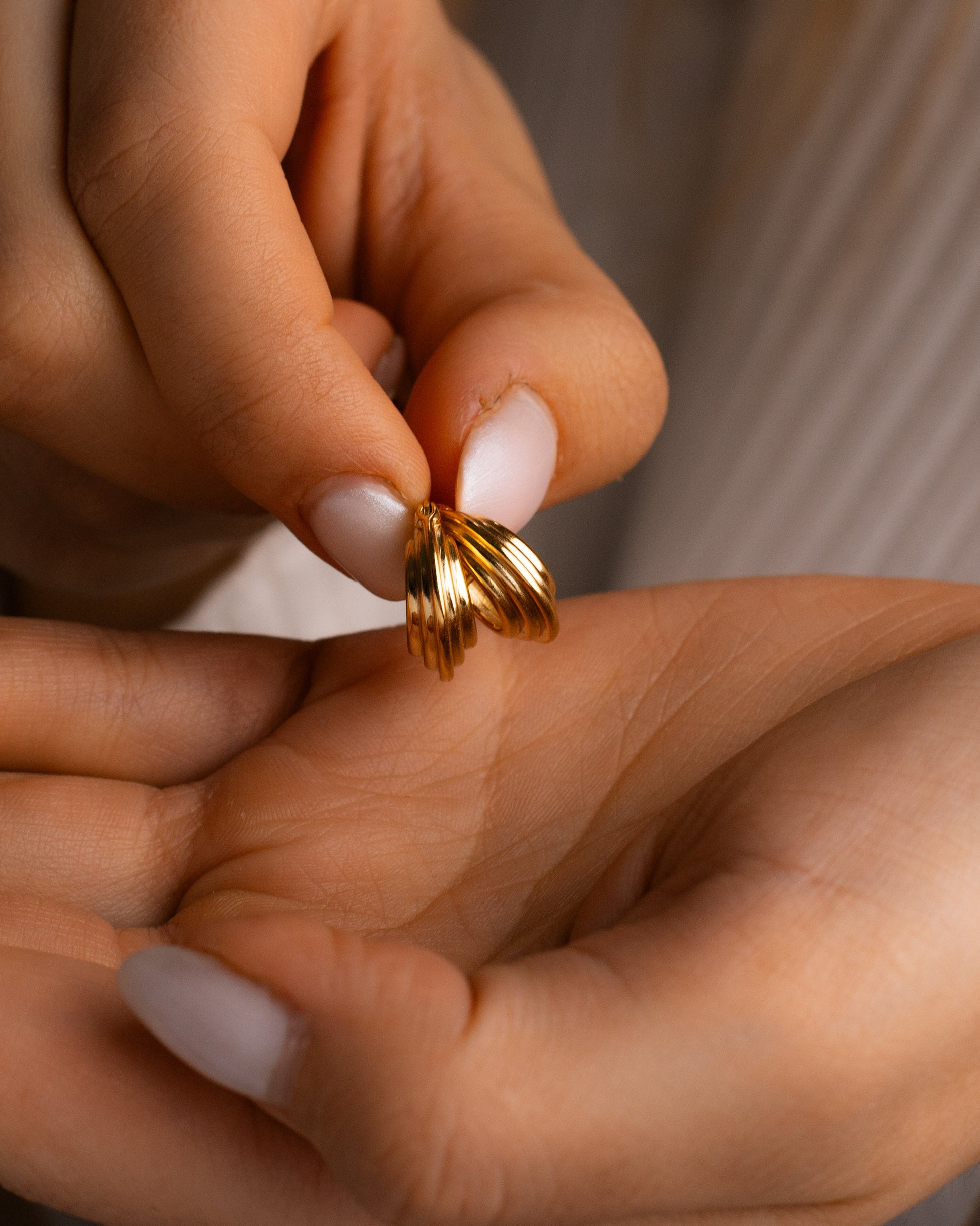Many layers just like an onion. These wonderful gold ridged hoop earrings add depth and shape to create a lasting impression that won't be forgotten.