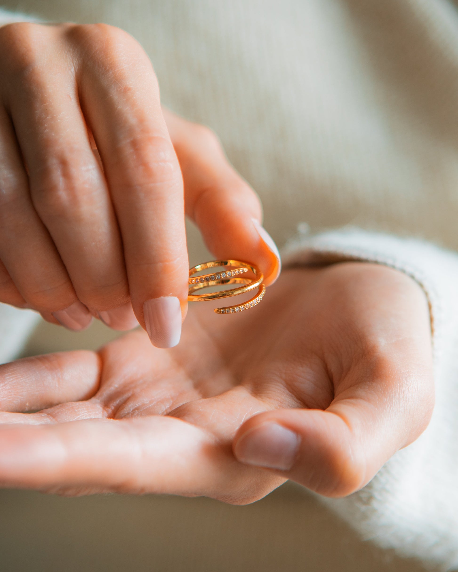 Three times the fun. This amazing geometrical spiral gemstone ring showcases your uniqueness to others while also looking great.